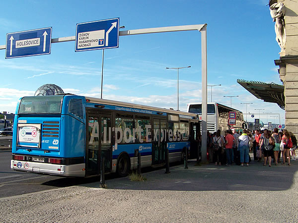 Sale del aeropuerto y llega hasta la estación de metro Dejvická (linea A, verde) y desde ahí podemos continuar en metro hasta el centro. Sale cada 10-15 minutos, cuesta unas 27 Kc (un Euro aproximadamente) y circula entre la 04:30 y las 0:00 horas. Si llevas equipaje voluminoso recuerda que debes pagar un suplemento por cada bulto.