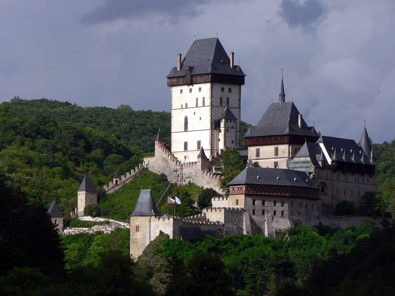 A poco más de 30 kilómetros al Sudeste de Praga, en la región de Karlstejn (una de las principales reservas naturales de Bohemia), se halla encaramado en lo alto de un monte el impresionante Castillo de Karlstejn en la ciudad del mismo nombre.